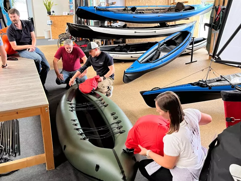 Bei Out-Trade brennt man für seine Produkte, nimmt Kundenfeedback ernst und verbessert seine Modelle kontinuierlich. Und die Angst vor dem Aufbau der Falt- und Hybridboote ist eigentlich unbegründet. Zwei spannende und lehrreiche Tage haben zudem den ein oder anderen Geheimtipp hervorgebracht. Und auch sehr wichtig, jede Menge Spaß gemacht!
